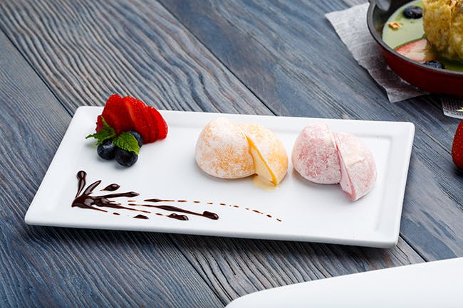 Top Row: Garlic Beef Yaki, Mochi Ice Cream